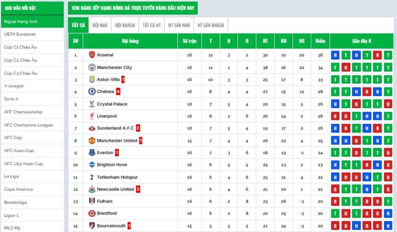 Ngoài tỷ số trực tuyến và tỷ lệ kèo nhà cái, bảng xếp hạng cũng là yếu tố quan trọng khi soi kèo tại Bongdainfo