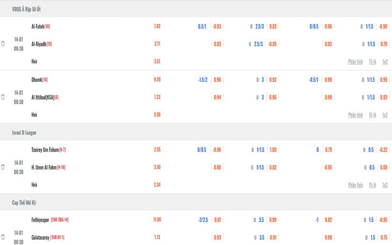 Nhận diện kèo dụ và kèo thơm thông qua bảng tỷ lệ kèo