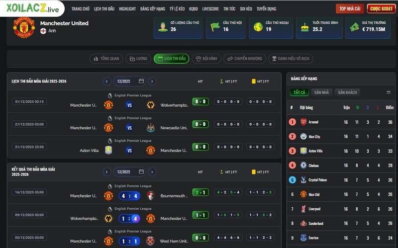 Nếu anh em là fan bóng đá lâu năm giống mình, chắc sẽ hiểu cảm giác quen thuộc này: không lo thiếu link xem bóng đá, chỉ sợ quên lịch đá của đội mình thích. Đặc biệt với những fan M.U như mình, lịch thi đấu của Quỷ Đỏ lúc nào cũng phải nắm thật chắc. Ngoại hạng Anh đã dày, còn thêm Cúp C1, Cúp FA, Carabao Cup… chỉ cần lơ là một chút là bỏ lỡ ngay trận quan trọng. Và cũng chính vì lý do đó, mình gắn bó với Xoilacz TV, một nền tảng mà theo cảm nhận cá nhân, làm rất tốt hai điều quan trọng nhất với fan bóng đá: xem trực tiếp dễ dàng và theo dõi lịch thi đấu cực kỳ rõ ràng, nhất là lịch của M.U.
